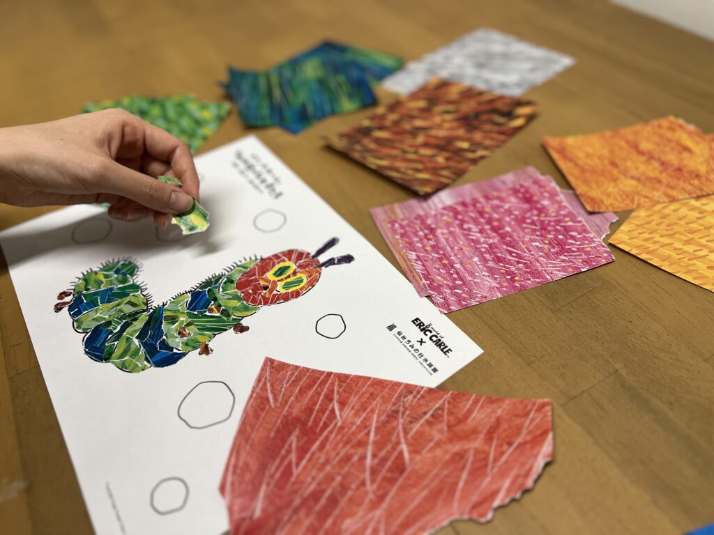 エリック・カールが好んだ手法『ティシュー』素材を使って、はらぺこあおむしや海の生きものを飾り付けるワークショップを実施いたします。エリック・カールのアートを体験しながら、自分だけのはらぺこあおむしや海の生きものをつくろう!