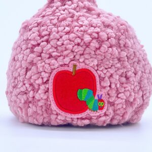 はらぺこあおむしがりんごから登場する姿を可愛らしく刺繍で表現しました。